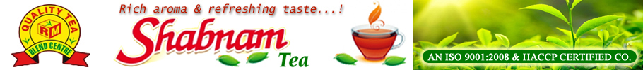 SHABNAM. A leading brand owned by R. M. Tea Industries is one of the most respected and recognized brand in Malwa Region of Punjab established by Shri R. K. Dass in 1969 and came to pouch packing in 1997 as a 1st SSI Tea unit of Punjab. The Company is certified with ISO 9001:2008 & Haccp registered with BSCIC.